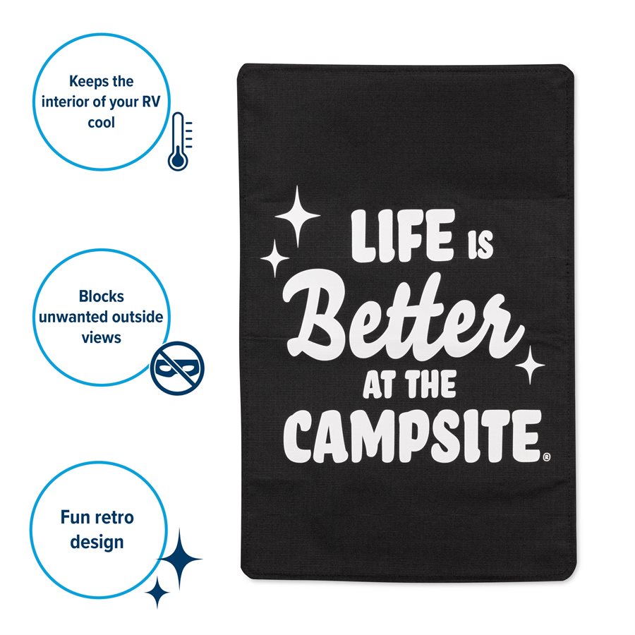 Camco Reflective RV Window Shade – “Life is Better at the Campsite” Design (25-1/4" x 16-1/4")